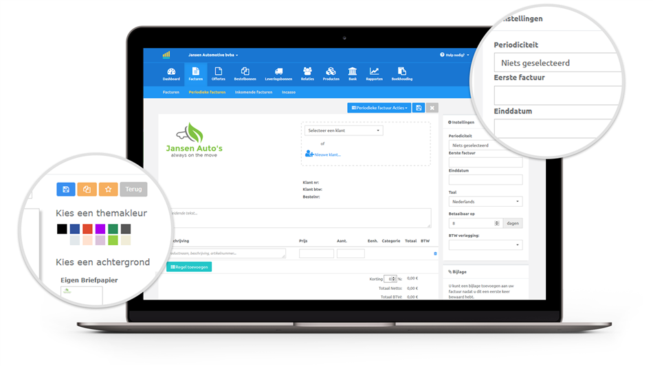 Veel bedrijven werken met een of ander abonnement of lidgelden systeem en moeten regelmatig - maandelijks, per kwartaal, jaarlijks... - voor heel wat klanten een periodieke factuur opmaken. Is dat het geval, dan hebben we goed nieuws: Bilansoft regelt dit allemaal automatisch voor jou. Zelfs inclusief het verzenden als je dat wil!