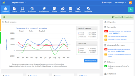 Genereer een omzetrapport voor eender welke periode, bekijk je resultaten rekening per boekjaar met gedetailleerde opsplitsing per categorie, etc. Je krijgt een snel en vooral duidelijk overzicht van de stand van zaken in je onderneming, rekening houdend met je omzet, je inkomende facturen én je andere kosten (lonen, bonnetjes, interesten,...). Dat alles zonder dat je allerlei opzoekingen moet doen of ingewikkelde lijsten moet doorlopen!